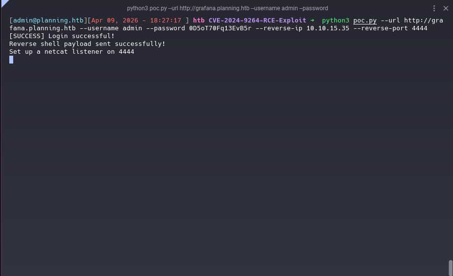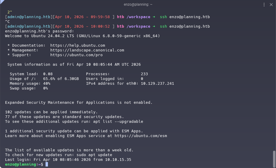 ssh -L 9001:localhost:8000 enzo@planning.htb