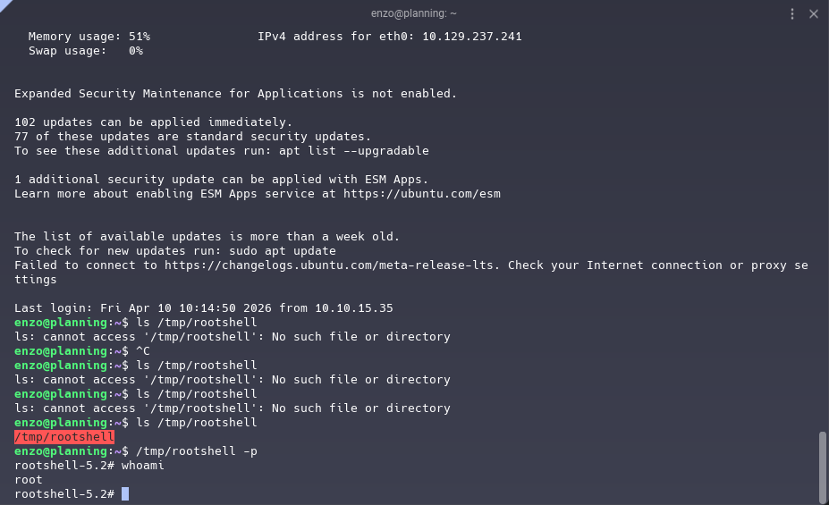 Il faut savoir que l’on peut forcer le lancement du script sur le site directement. Et voilà, notre root shell.