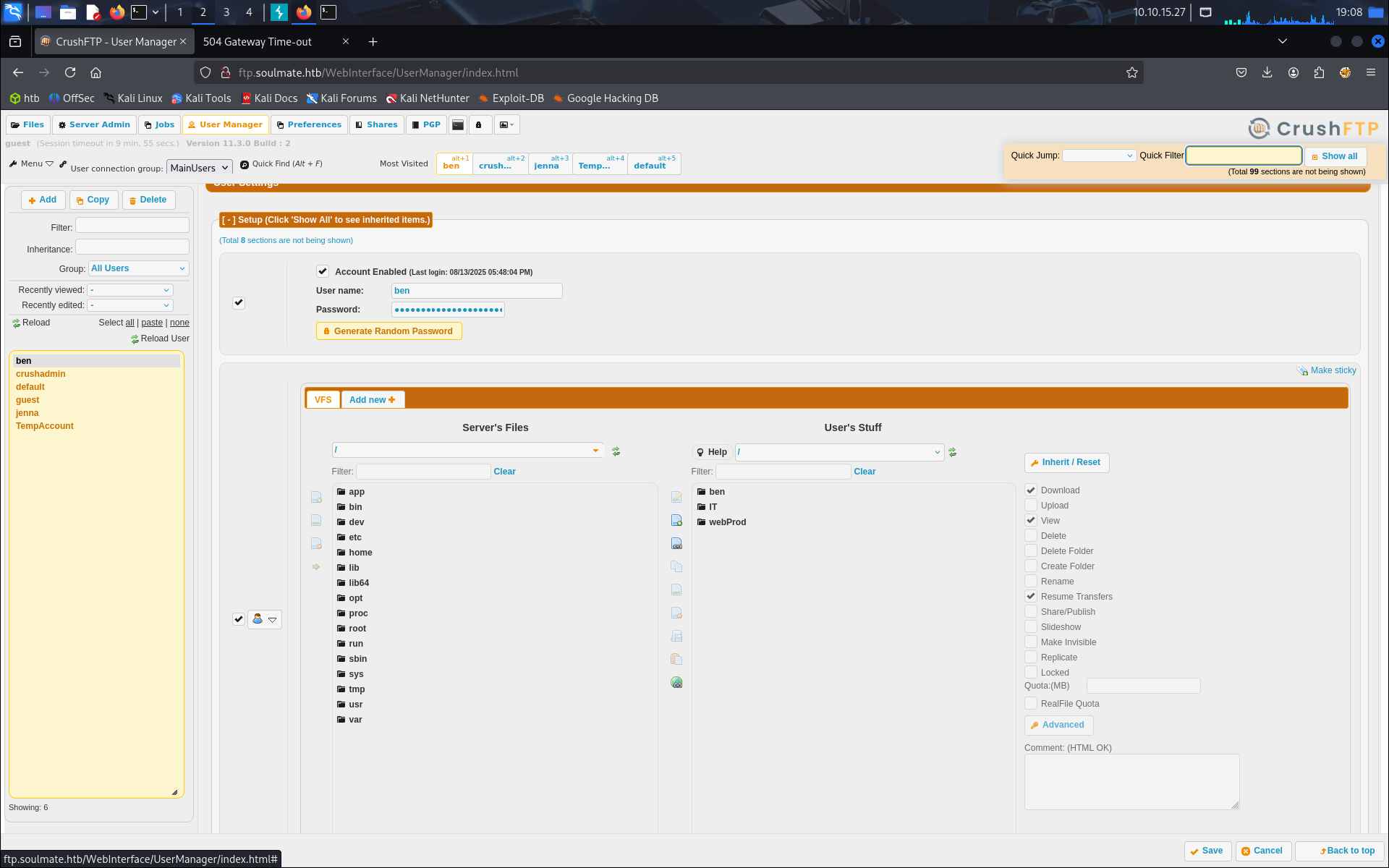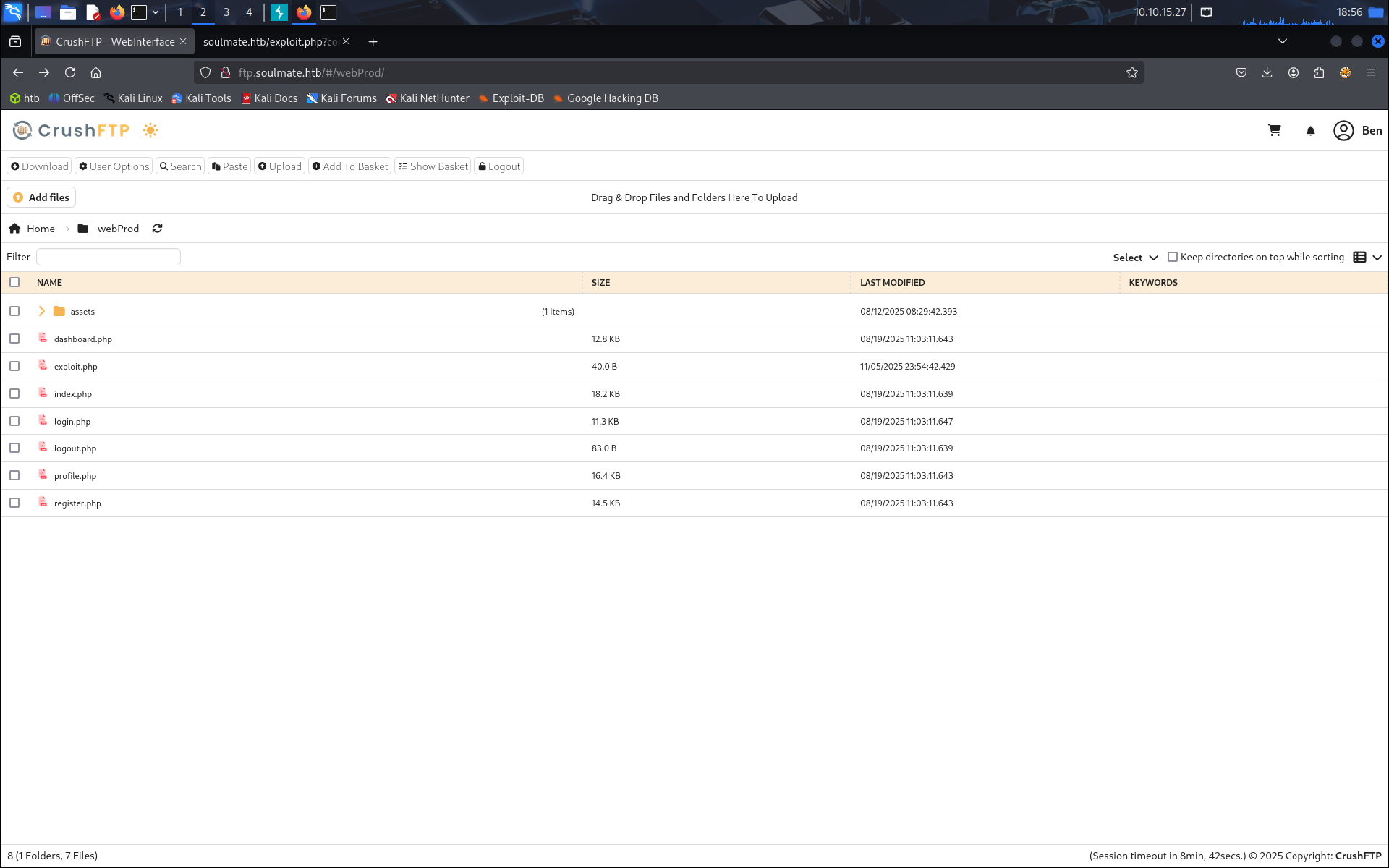 On se déconnecte du site pour accéder au profil de ben, après quoi on se rend compte que l’on peut aller dans le dossier webProd et ajouter des fichiers. On ajoute notamment un fichier exploit.php, dans lequel on met le code