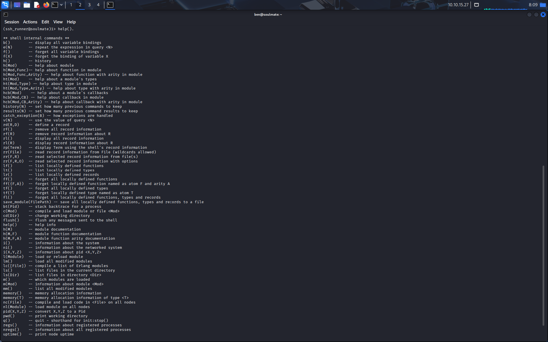 Et on arrive sur un ssh erlang.