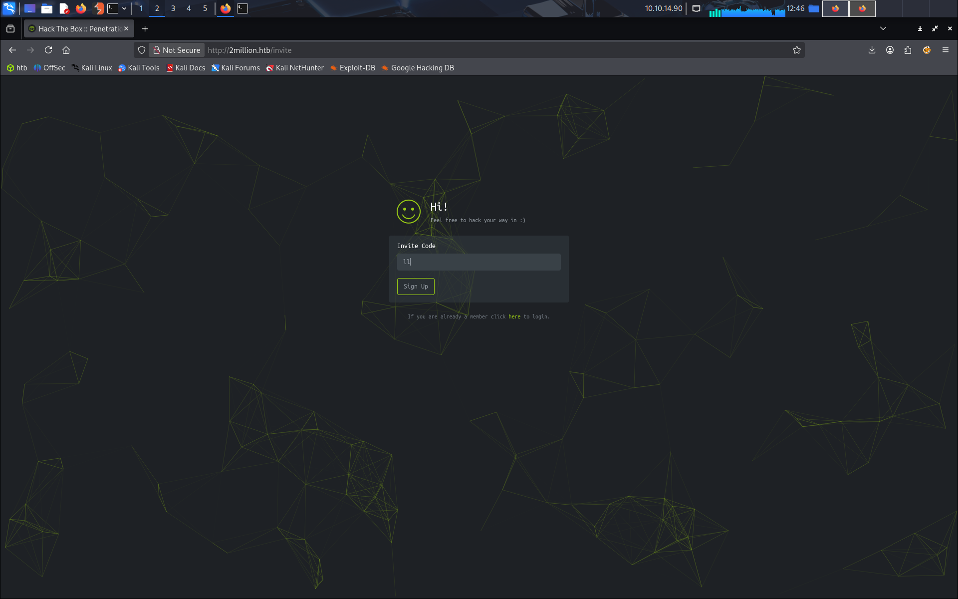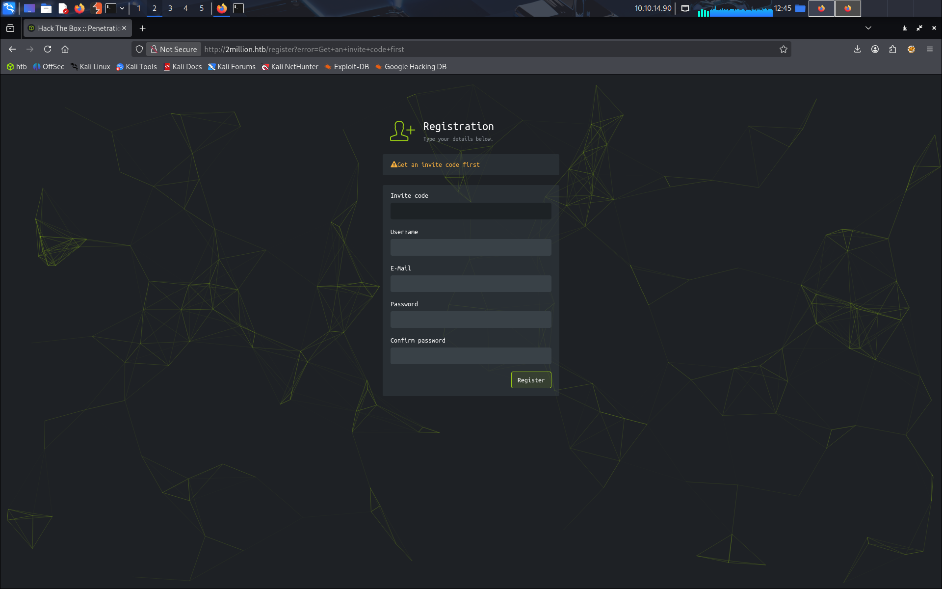 On arrive sur la page register mais il nous faut un code d’invitation pour pouvoir se créer un compte.