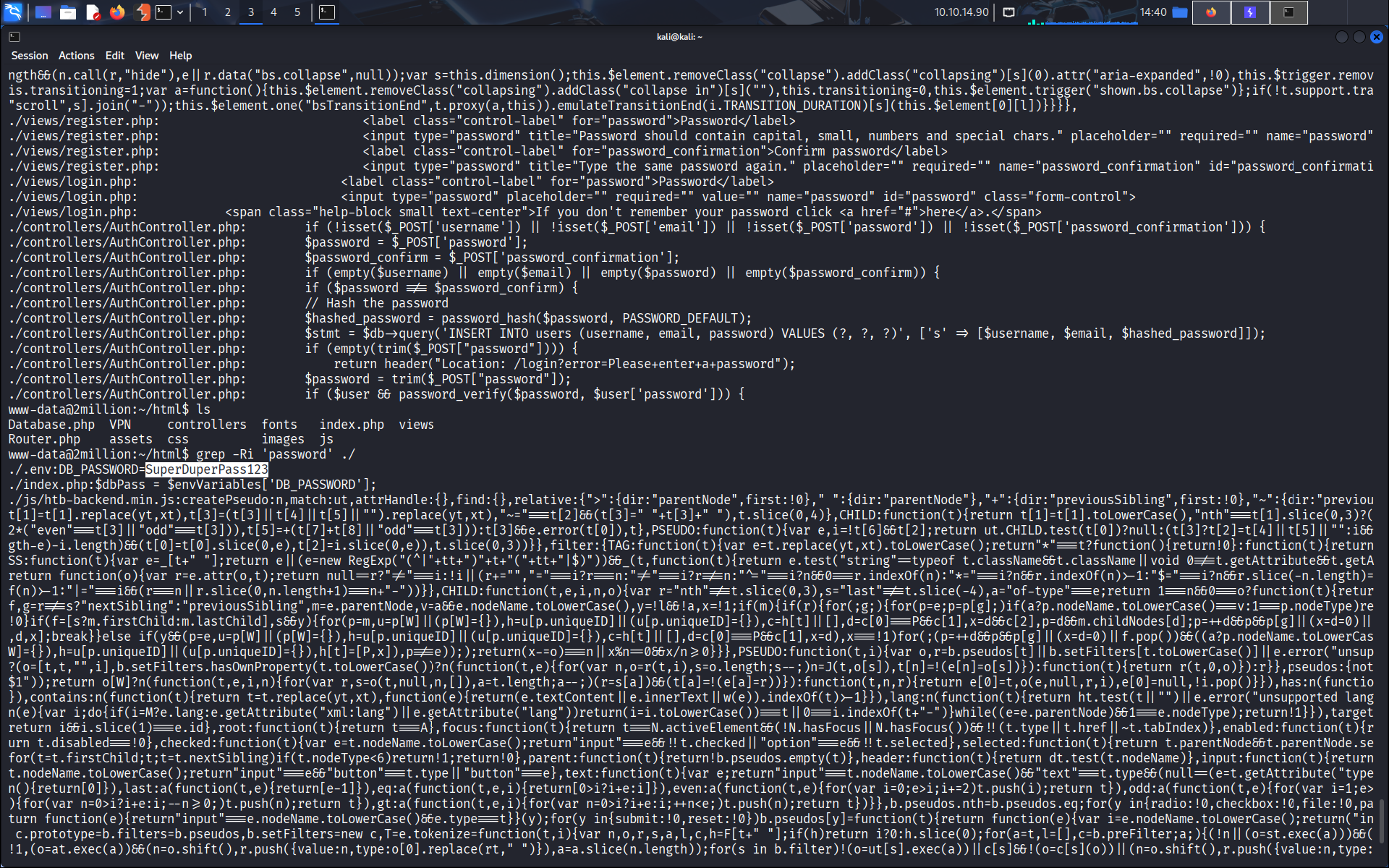 On commence par un simple grep pour chercher un mot de passe.