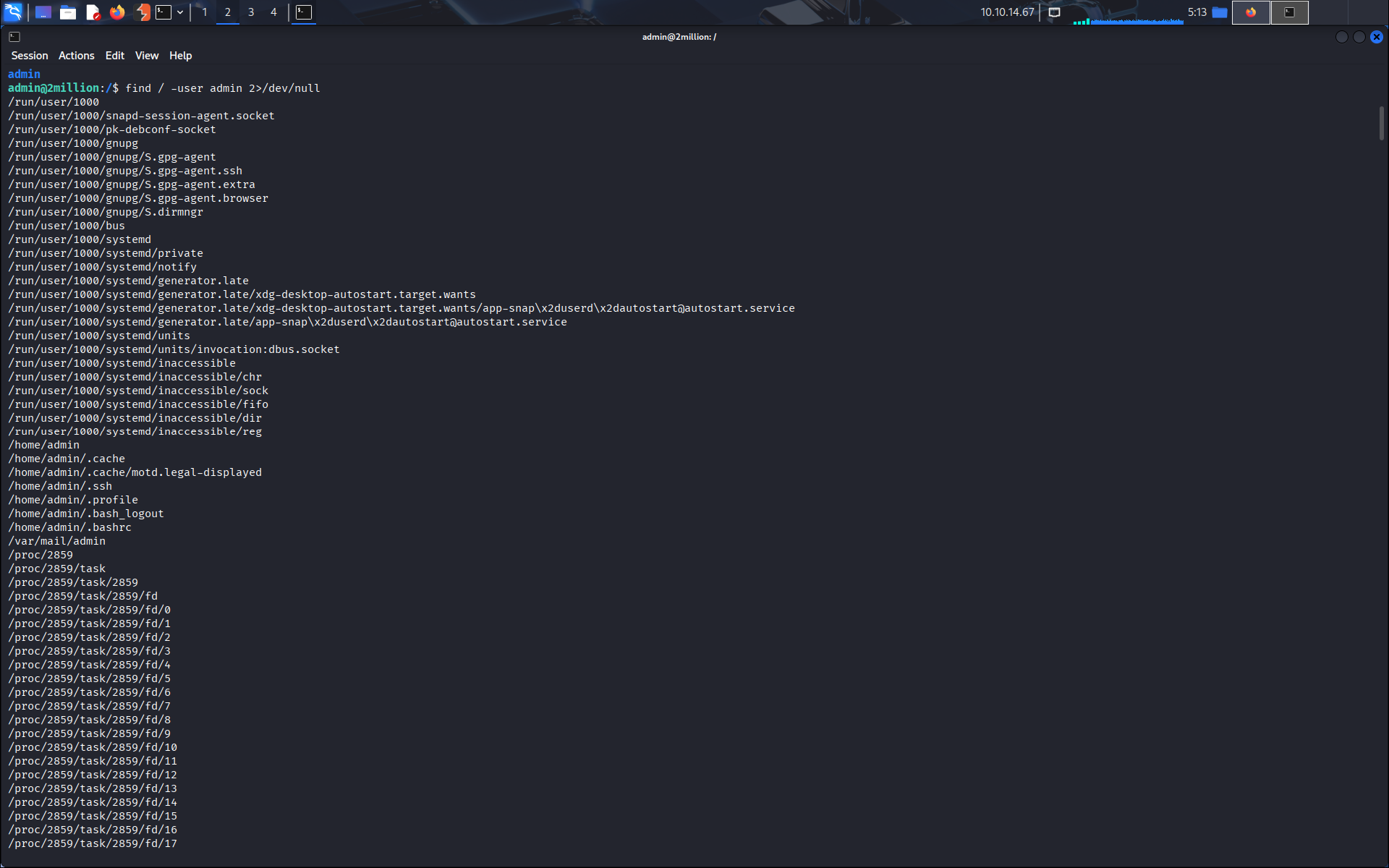 find / -user admin 2>/dev/null