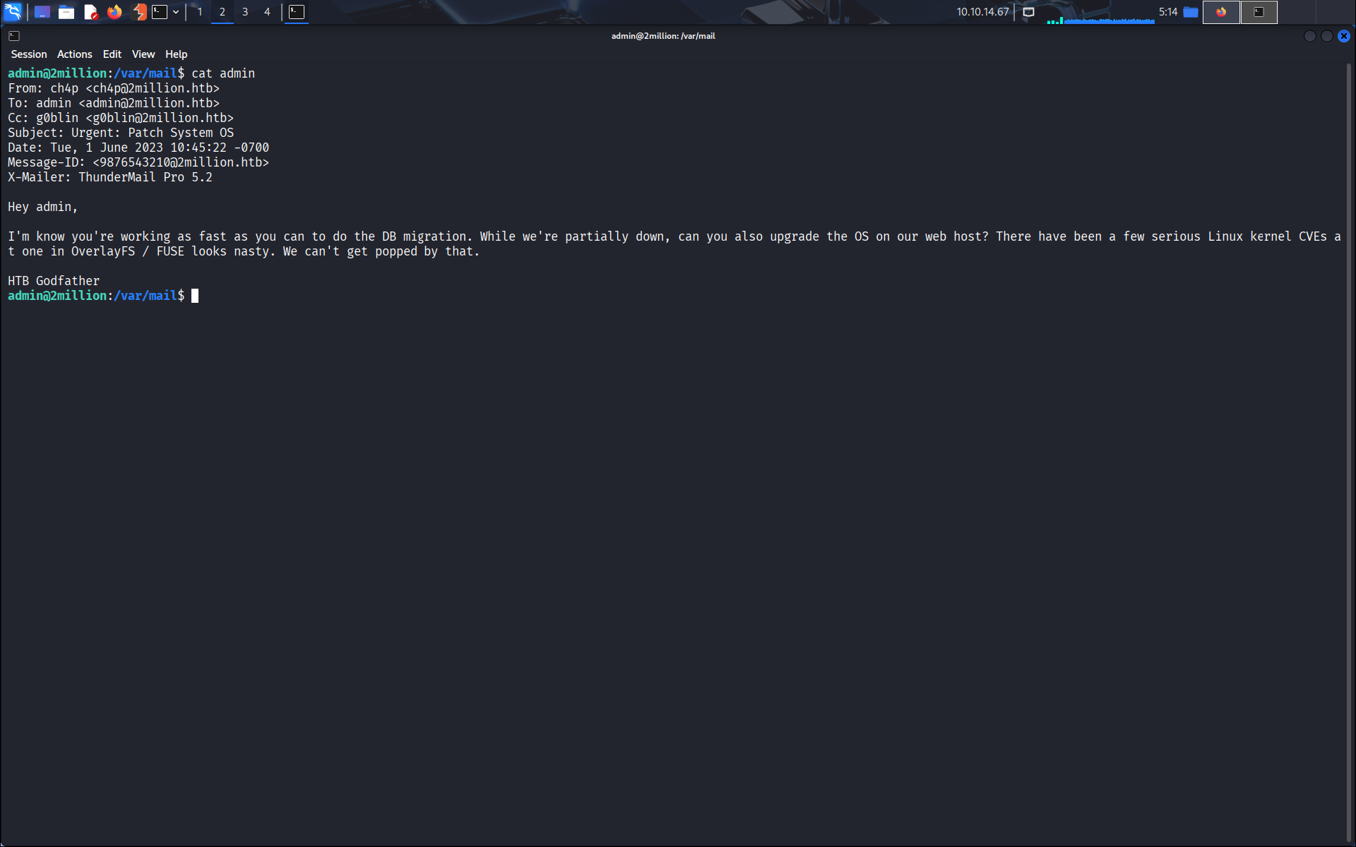 On trouve /var/mail/admin.